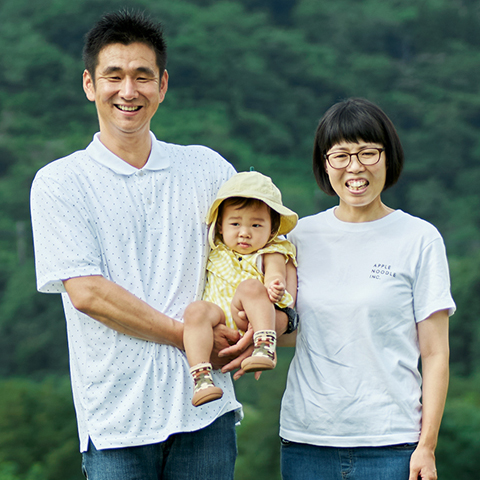また9月になるとりんごの収穫も本格的にスタートします。時期に応じて実っていくりんごたちのいちばん美味しいタイミングを見極めながら家族総出で収穫していきます。